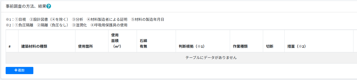 書面調査の場合、建材登録は不要のため空欄で登録してください。