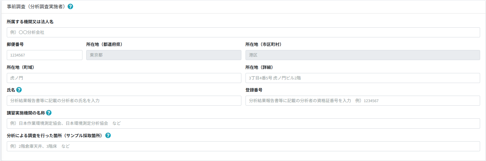 書面調査の場合、分析依頼は不要のため空欄で登録してください。