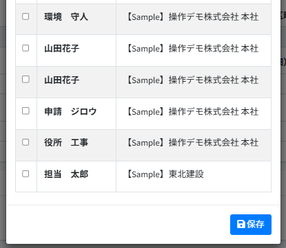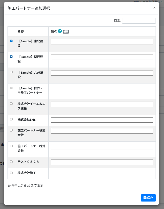 該当の[施工パートナー]にチェックを入れて、[保存]を押します。