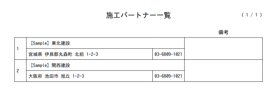 [施工パートナー一覧]にすべて反映されます。
