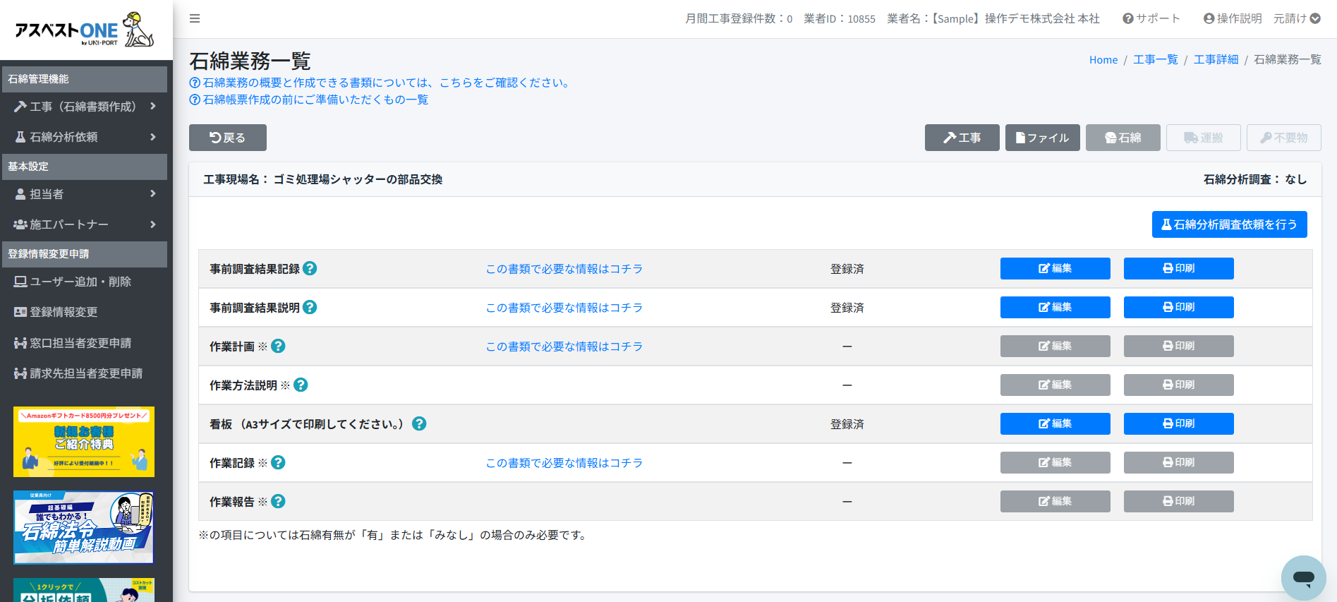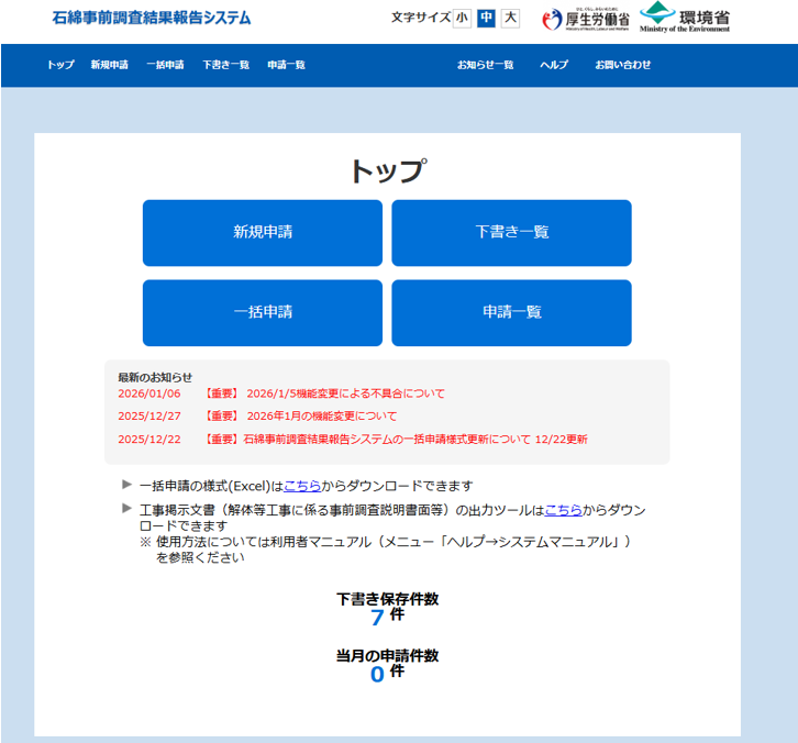 石綿事前調査結果報告システム:050-2018-0061