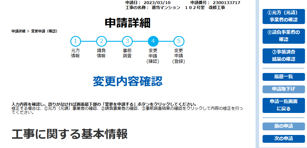 - [変更内容確認]を行い、[変更を申請する]を選択します。